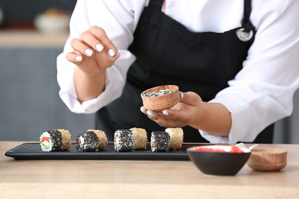 Japanese cooking can be broken down in to five basic cooking methods. These are “Nama”(cutting), “Niru” (simmering), “Yaku” (grilling), “Musu” (steaming) and “Ageru” (deep-frying). Meals usually start with the most delicate in textures and flavours foods, such as a few slices of raw sashimi. Then soup or simmered vegetables are followed. Then food gets progressively more substantial; crispy tempura followed by grilled fish or meat.